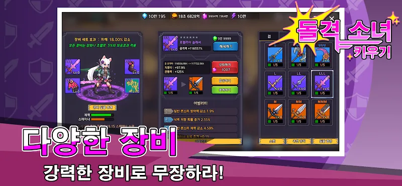 Raising Charge Girl MOD APK – is an idle RPG focusing on character growth and equipment upgrades.Raising Charge Girl wants you to overcome all the different puzzles, unlock new stories. The game wants you to have more motivation to perform your own battles, promote the character to grow stronger. Not only that, the game also allows you to use special support features to help the process of defeating enemies take place more effectively and more interestingly.GROWTHYou will lead your character into an impressive story where you