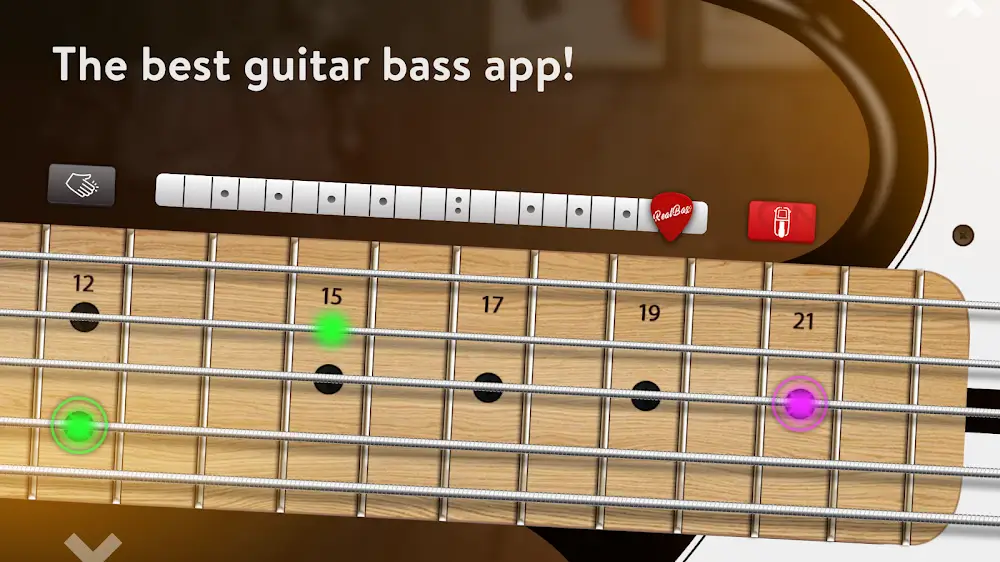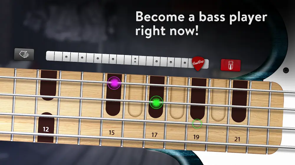 Real Bass liteapks ce. Users can start with learning and entertaining with guitar sounds. We’ll record your playing time and make it the great clip of your career. The application can work on any device with a touch screen.COMPLETE THE PROFESSIONAL PERFORMANCE SECTIONReal Bass helps users get the best experience in controlling bass guitar right on their device with just a few touches. Besides, the system also upgraded a series of other features and added many great music tutorials. The access process will be shortened, and users will become more professional than ever. The sound quality we provide will make your experience more worthwhile after every track.