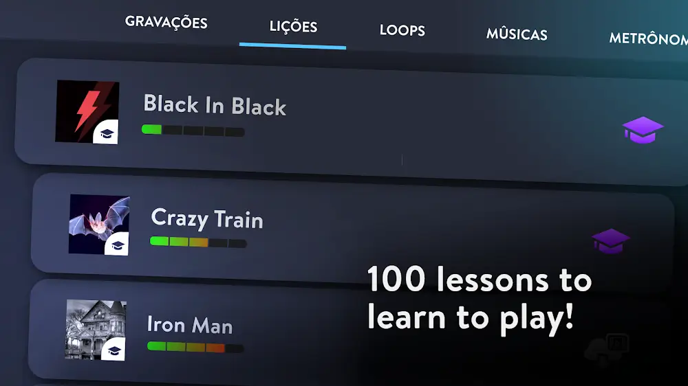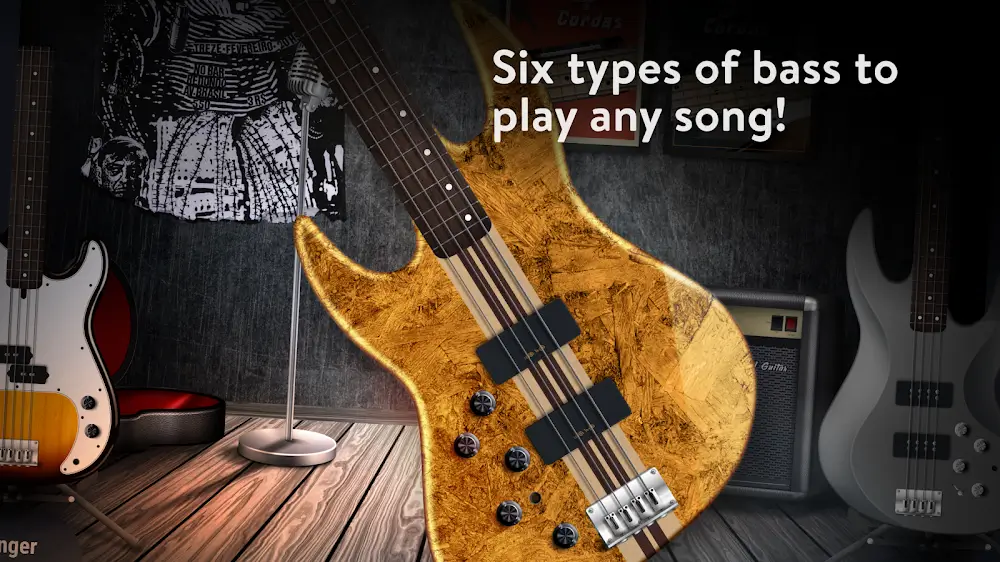 Real Bass provides an immersive experience with the virtual electric guitar displayed on the device’s screen. The touch controls will allow the user to control the strings and create funny sounds. The information provided by the system will suggest the usage process. Users are allowed to explore the lessons available on the application and review the video recording of their learning process. Excellent information about the type of instrument and how the pieces are played will also be provided to you by the system.PROVIDE LESSONS RELATED TO BASS GUITARFor those who are new to the Real Bass spatial experience, the system will provide detai