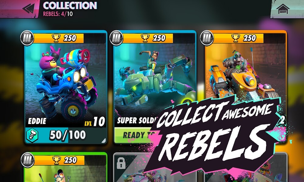Rebel Riders Mod Apk s, such as grumpy teddy bears and high-tech action figures. As they amass the ultimate collection of battlers for maximum multiplayer mayhem, players can unlock every Rebel Rider and their Editions. The more Rebel Riders you collect, the more customization and battle methods you can employ. Players can experiment with different tactics and playstyles with each new character, making Rebel Riders a game that never gets old.EARN TOYKENS TO UPGRADE YOUR FAVORITE VEHICLESWith each battle in Rebel Riders, players can earn Toykens, which they can use to modify their favorite cars. Whether you like 4×4 vehicles, motorcycles, helicopters, or tanks, each vehicle has a distinct advantage in the arena. Upgrades can increase your vehicle’s speed, strength, and agility, giving you an advantage in combat. You