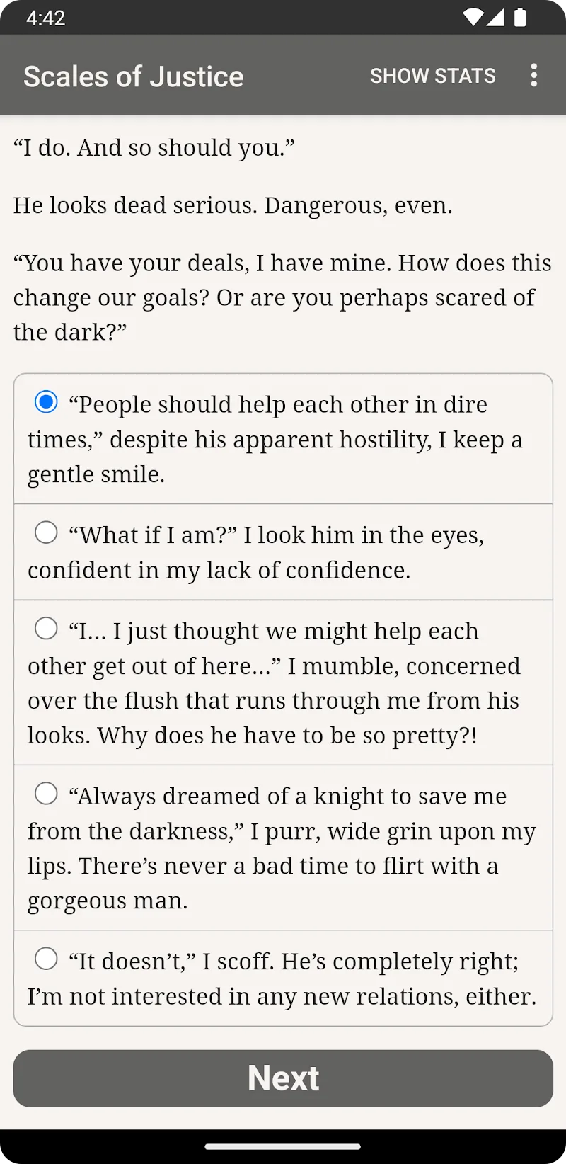 Scales Of Justice Premium ernatives: You may be free to investigate an endless chronicled world with celebrated authentic locales and lovely scenes portrayed in detail, inundating you with the story and feeling like you’re truly living in that world.CHOICES WITH RESULTSThe diversion is based on your choices and choices. You will consider the circumstances given to you, and you must select the right reply so that your character can go within the right course and provide you with the foremost culmination finishing.Impactful account choices: Each advancement will have distinctive results, giving you c