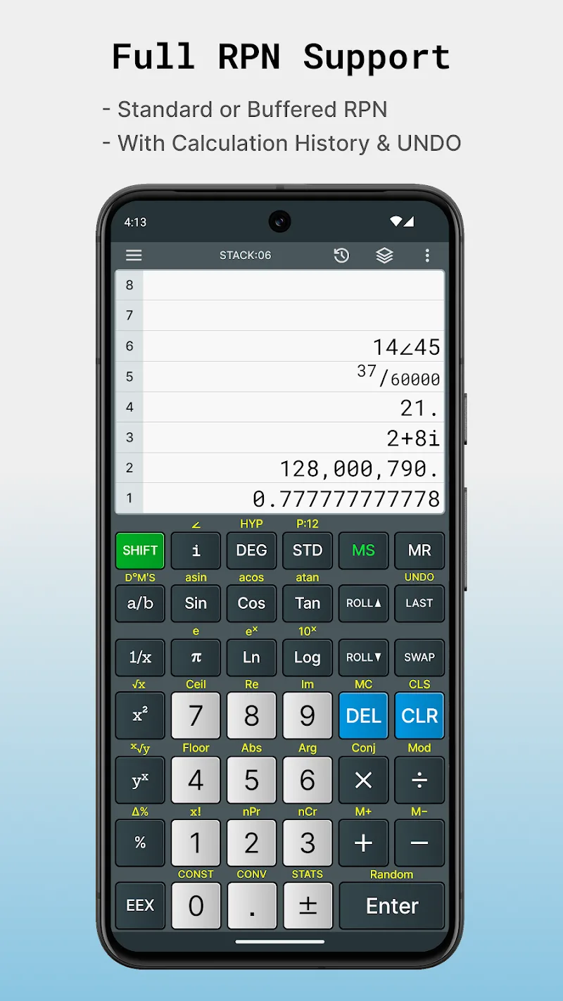 Calctastic Calculator Premium ey are too permitted to duplicate and glue the substance that should be calculated into the spreadsheet. The calculation speed of the application is quickened to assist the calculation prepare spare more time. Clients will involvement an amazingly prevalent calculation highlight framework.LOGICAL CONTROLThe application gives a calculator with greatly delicate data handling capabilities. The exactness of the comes about is continuously ensured. Clients can rest guaranteed that to can utilize the application to perform troublesome and complex calculations. Many factual and programming operations are also accepted within the application.Complex Number Back: The application gives complex numbers in a rectangular frame and a greatly adaptable change shape.