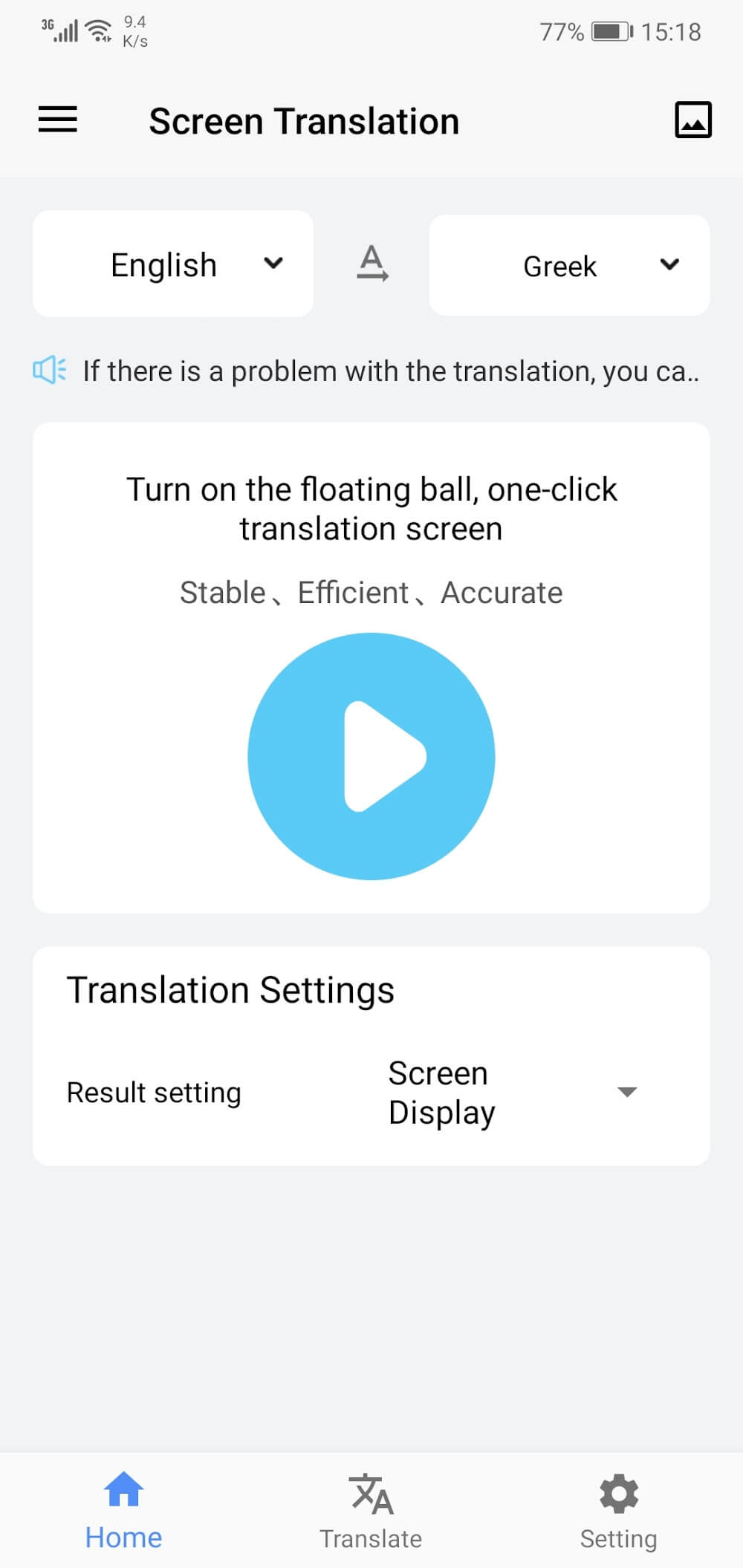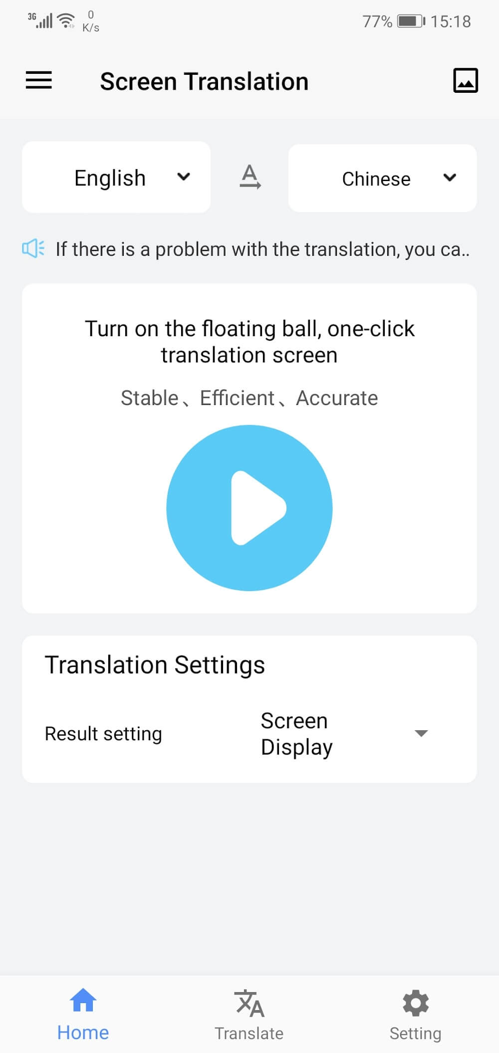 Screen translator is an application that helps users switch languages on the screen of electronic devices. You can use it for work or bilingual communication. Outstanding features and a simple interface make it easy to perform operations quickly. The application can translate any object or image into the language you want. If you are a tourist, this app is handy for chatting with others.APPLICATION OF MULTI-FUNCTION AND MODERN TRANSLATIONScreen Translation application helps you to scan t