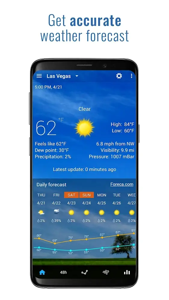 One of the most accurate notifications and updated weather apps is probably Sense Flip Clock & Weather. With a set of weather widgets and a flip clock, users can be sure of the application’s accuracy. Besides, the application also informs you of the current location’s weather or locations that you are interested in. With up to 10 locations worldwide that you can add, you can see the weather for those areas.PROVIDE PARAMETERS ABOUT CURRENT WEATHER CONDITIONSAs a person who often works outdoors or has a passion for travel, the weather is always an issue of your concern. That’s why you should download the application and experience its benefits