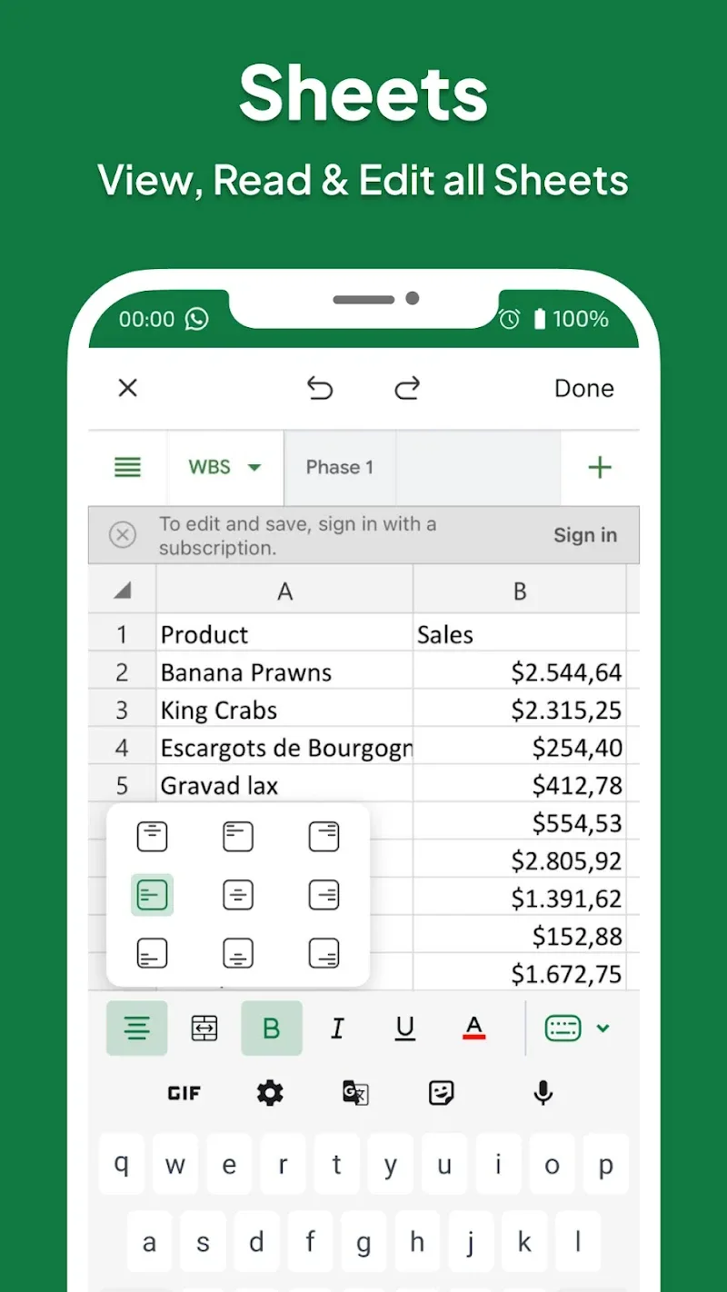 SheetsReader:View, Edit, Share is a modern tool that allows users to customize spreadsheets and documents professionally. The application provides editing and data change features. Basic calculations and complex functions are provided, and you can also change visual formats for necessary documents.VIEW & EDIT SHEETSThe application helps you manage Spreadsheets effectively, control calculations that take place during the saving process. Users can color important numbers or frames, mark by adding notes if desired. You can also easily