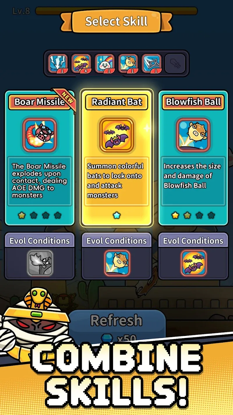 Slime Clashroguelike Shooting Mod Apk this game, from the characters to the scenery in the game, is designed by the producers with great care and detail.Vibrant Hero Designs: The warriors in this game have extremely cute and colorful interfaces, giving you the feeling that these characters are real because they are made so vividly. Every gesture exudes authenticity.Unique Hero Skills: Each warrior not only has a different interface and personality, but they also possess extremely unique skills and fighting abilities. You will quickly find a character that suits your playing style and strategy to bring the bes