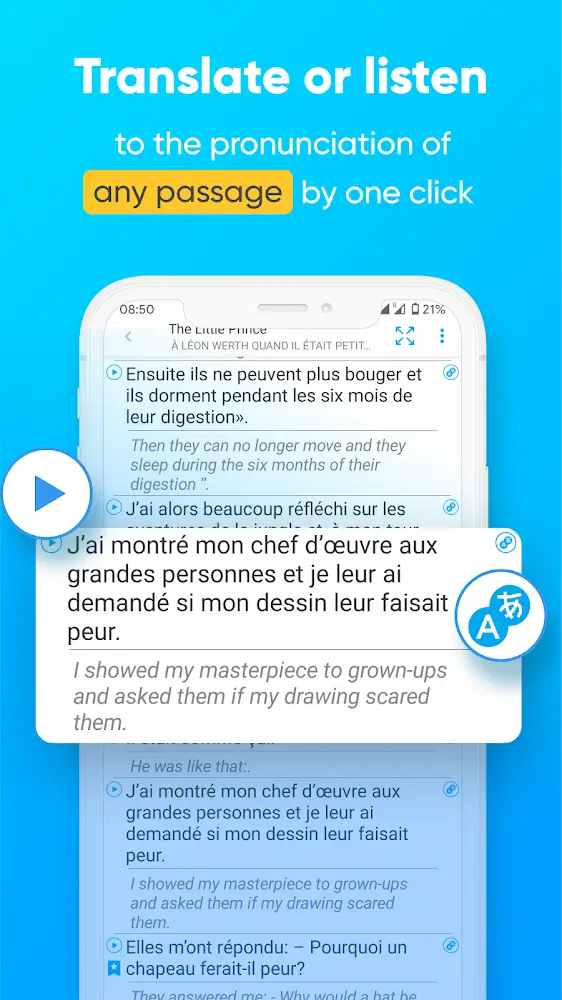 Smart Book Premium transliteration provided, you should not ignore the meanings that you can get. Specifically, these meanings will be compiled and only sent to you with the meaning that best fits the context so you can use it later in speaking or writing situations. This provision is guaranteed to have certain accuracy because it is compiled and evaluated from the most reputable translation tools today. From there, all operations will be accelerated, such as reading documents effectively or reading books, which will also become completely convenient and easy to understand because words have been refined to a certain level.Learn about pronunciation: As long as you are curious about a word, you can touch it to have the system recognize and pronounce it immediately.Listening and repetition skills: Users should not memorize it by memory, but they should try reading along to gradually get used to the standard.Recognize sounds easily: Once you reach a certain level, you will not be deaf while communicating in a foreign language.SUPPORT FOR EPUB AND FB2 FORMATSThe book can be completely split into two, and no one function is redundant. Splitting the screen will often help users read the source file and translation file easily without having to swipe the screen many times and feel uncomfortable because