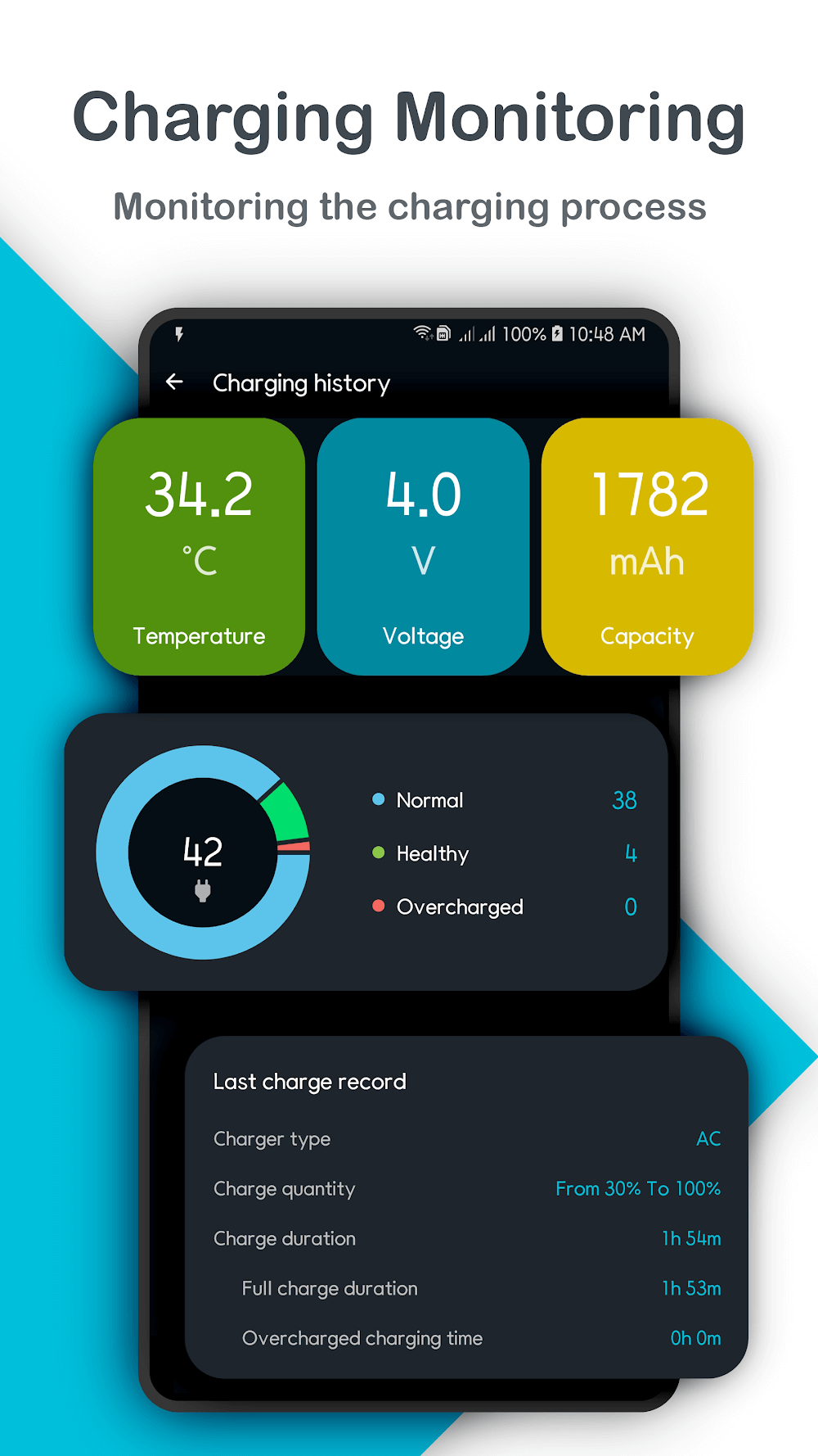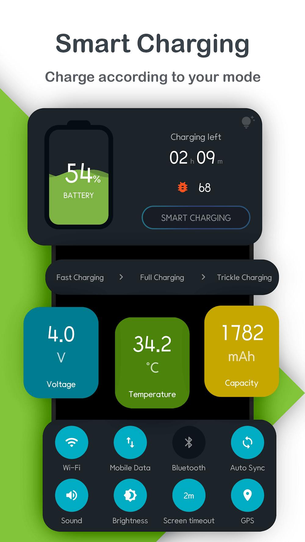 Smart Charging Charge Alarm Mod Apk f the battery. In addition, you can also add a new mode to monitor the charging process and give the most modern statistics table.ALIGN THE CHARGE TIMEThe app offers impressive charging time alignment features to see how long your device takes to charge fully. The application wants you to be able to stop charging on time, save power consumption as well as increase battery life. The application gives you special types of statistics, and you can track the battery charging process and how many hour
