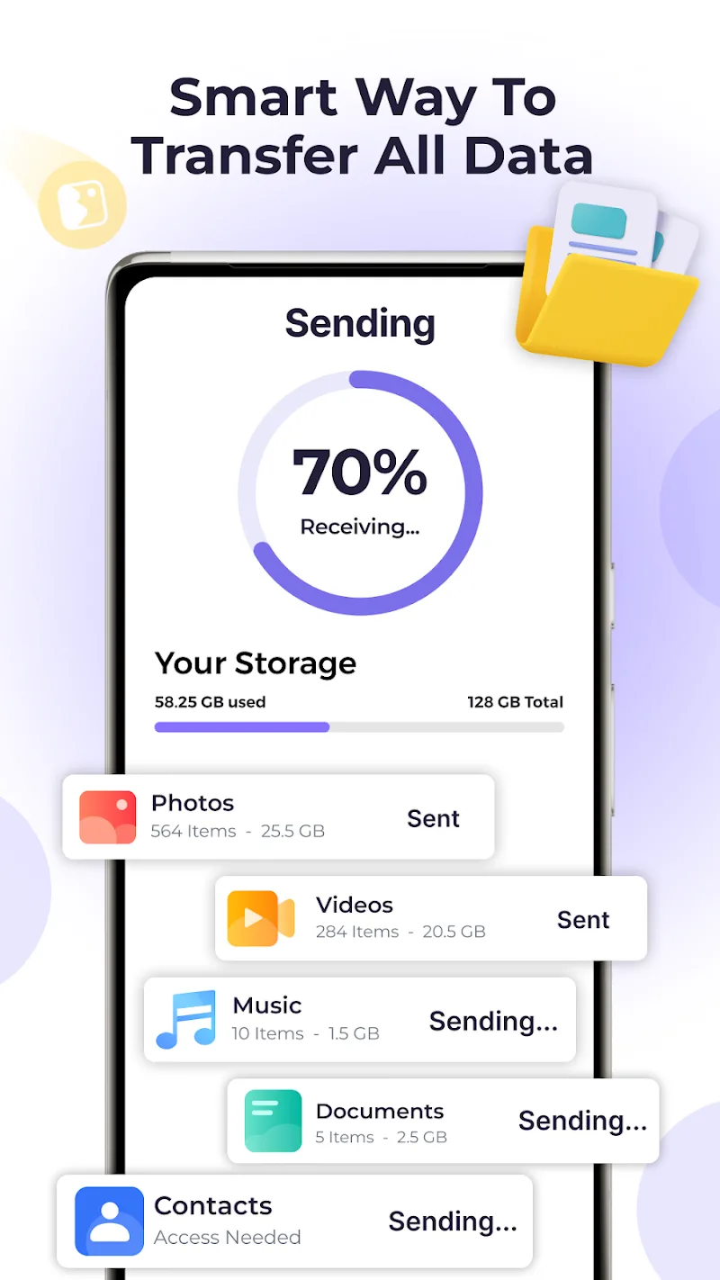 Smart Data Transfer Premium y to ensure that no errors occur.Seamless Experience: In just a few steps, users can complete the transfer of a large number of files. You can convert your long-used application to your new device. All content stored on your device will be included in the conversion area. The application always strictly protects the file-moving process.VERSATILE FEATURESThe application supports many great features. In particular, it can support the conversion process of all files. Users can establish a connection between devices. Select the content you want to convert and wait for the system to work.Supports all formats: The content you see on your new device is the result of the conv
