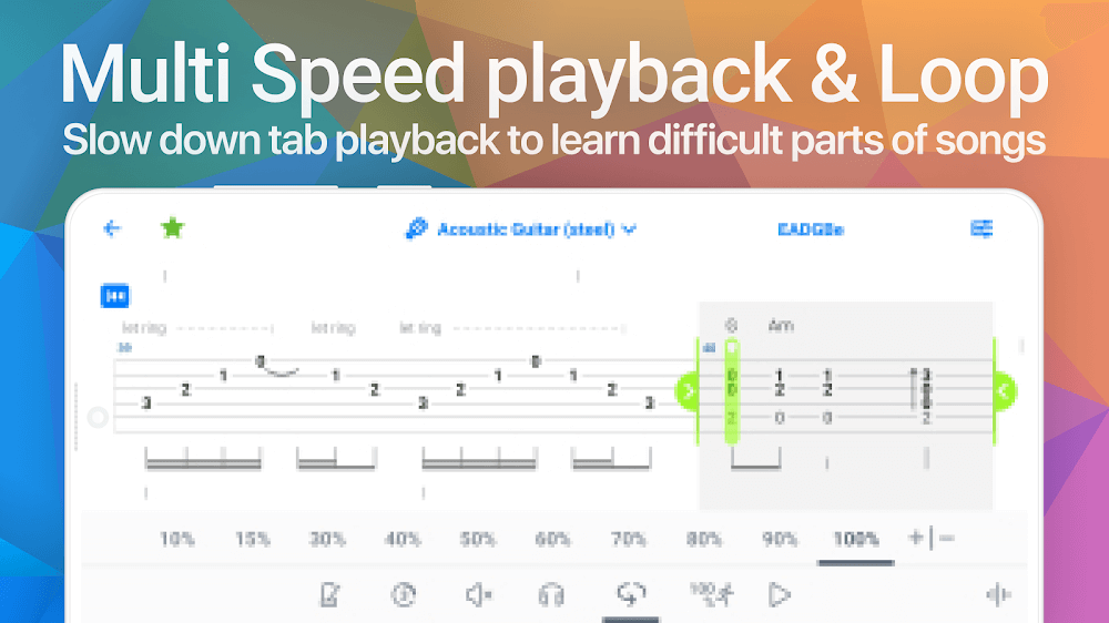 Songsterr Guitar Tabs Chords Mod Apk tion.REALISTIC GUITAR ENGINEHere, you will interact and meet many good teachers, who are all talented artists and can impart to you the best knowledge and experiences related to music. The music they create is loved and noticed by everyone; please explore them and draw useful knowledge for yourself.HD quality guitar tones and effects: You will enjoy vivid sounds just like in real life. Every step to practice playing the piano is taught in detail and easily understood by the teacher, so players will quickly learn how to play.Customize the guitar sound: You have the right to edit all sounds and create music according to your preferences. After learning the piano, you will practice playing your style and save it as a video so you can send and share it for everyone to enjoy.SYNCHRONIZED ORIGINAL AUDIOEach song will have different characteristics and ups and downs, providing different long and short hums, so users need to learn carefully and memorize how to play the piano. That way you can become good as soon as possible. In addition, to create more excitement and attraction, you can invite friends or siblings to practice playing the piano together to have a peaceful relaxing space.Play along with the actual song tracks: