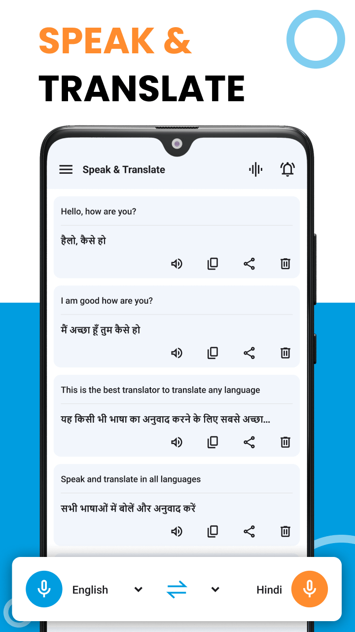 Text translation and vocabulary lookup will be supported by the Speak and Translate Languages application. Users can use this service for academic research and in their daily lives. The text translation function from images and voice translation helps users not to enter text manually. All user requests will be processed quickly.VOICE TRANSLATOR APPThe voice translation process helps users connect with people in many languages. While chatting, users can eliminate language barriers between countries. The application provides translation for many different languages around the world. Users can use the application as a translation tool for their trips.Real-Tim