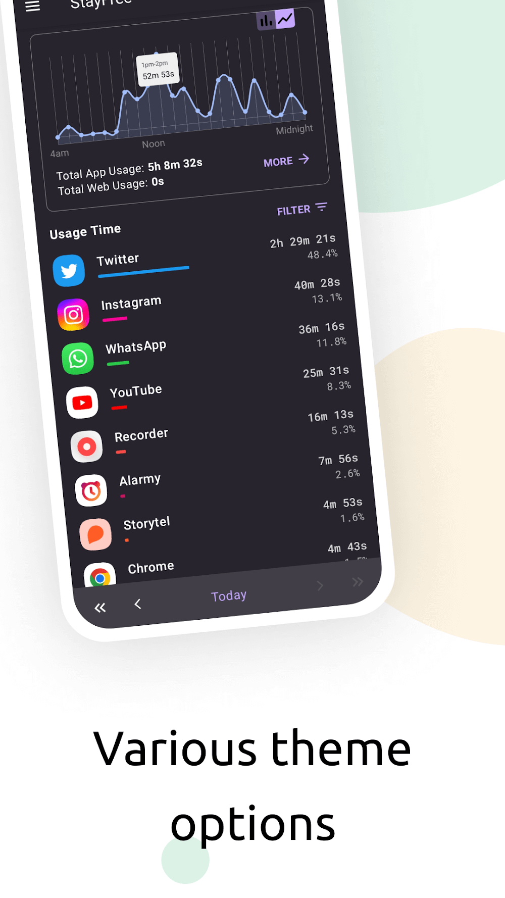 StayFree Mod APK, a self-control, productivity, and phone addiction controller tool, tracks your smartphone usage and helps you focus by restricting app use.StayFree is a productivity app that helps you focus completely on what you’re doing without being distracted by online content. The first object that will have limited usage time is social networking applications that often consume hours of users. At the same time, there is nothing that can overcome the barriers that the application sets, even if it is hot content today. From there, users can feel secure while working and solve important tasks before returning to the experience. Surely, the time spent in front of the smartphone screen surfing the web will be reduced in the most positive way.DETAILED USAGE HISTORYStayFree will be your supporter in reducing the amount of time spent using your smartphone. The first step before limiting usage time is for users to provide accurate data. In other words, you should try to use your smartphone for a few hours so that the application can