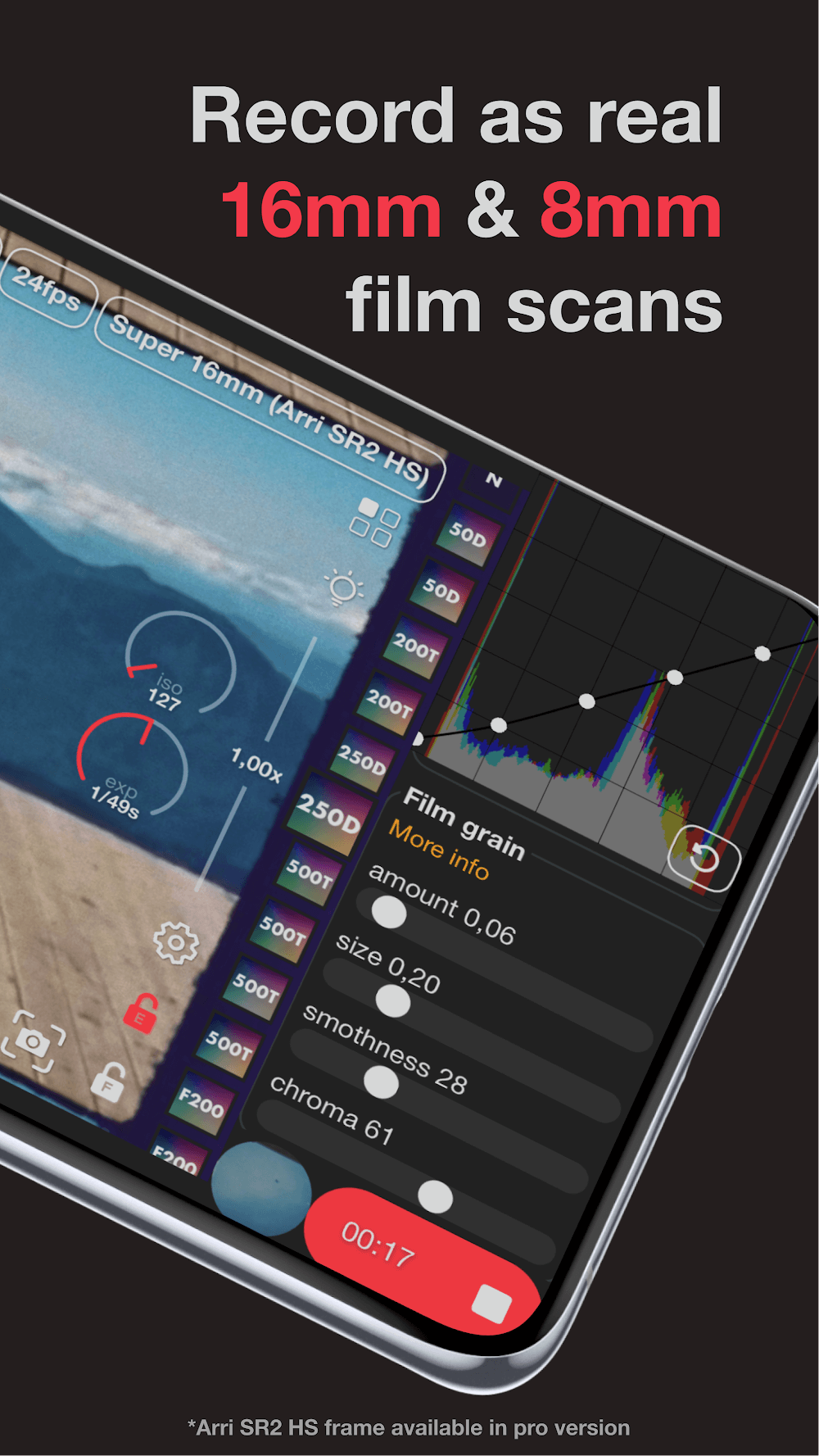 Super 16 16mm Film %d1%81amera Premium it and manually process colors to create colors that are different from the market.Real-time Color Analysis: The application provides a suitable color chart. You can rely on it to review and choose the screen according to the waveform that suits your needs.PHYSICAL FILM EMULATIONProvides you with a series of new visual edits that you can notice. Blurred or broken videos can be set to impressive HD mode. More specifically, the application also has many dynamic effects, in modern sub mode to serve the need for smoother