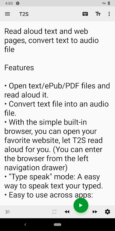 T2s Mod Apk even though they cannot focus on processing lengthy content. Audio files are stored and can be listened to many times to help remember important information.READ TEXT FILES QUICKLYT2S: Text to Voice/Read Aloud supports users in reading the provided text files accurately. From there, everyone can take advantage of this feature anywhere and for work. The application also supports the creation of corresponding audio files if they feel the