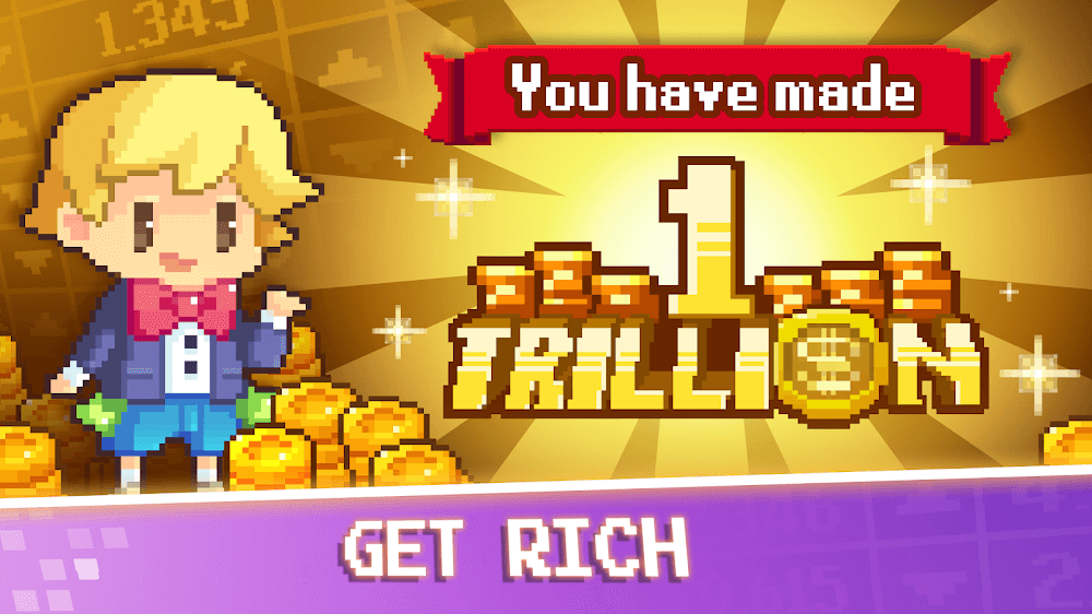 Tap Tap Trillionaire 8 Bits Premium es. The game will also provide you with a variety of traders working for you.Upgrade for improvement: These traders can also be upgraded by you by training them to bring more profits to the company.Strategic team building: The way you build a complete team for your company also requires a lot of strategy because each person will have a different task.DYNAMIC MARKET TRADING SYSTEMThe real estate market in the game is constantly changing. It creates attractive investment opportunities and many potential challenges. Players w