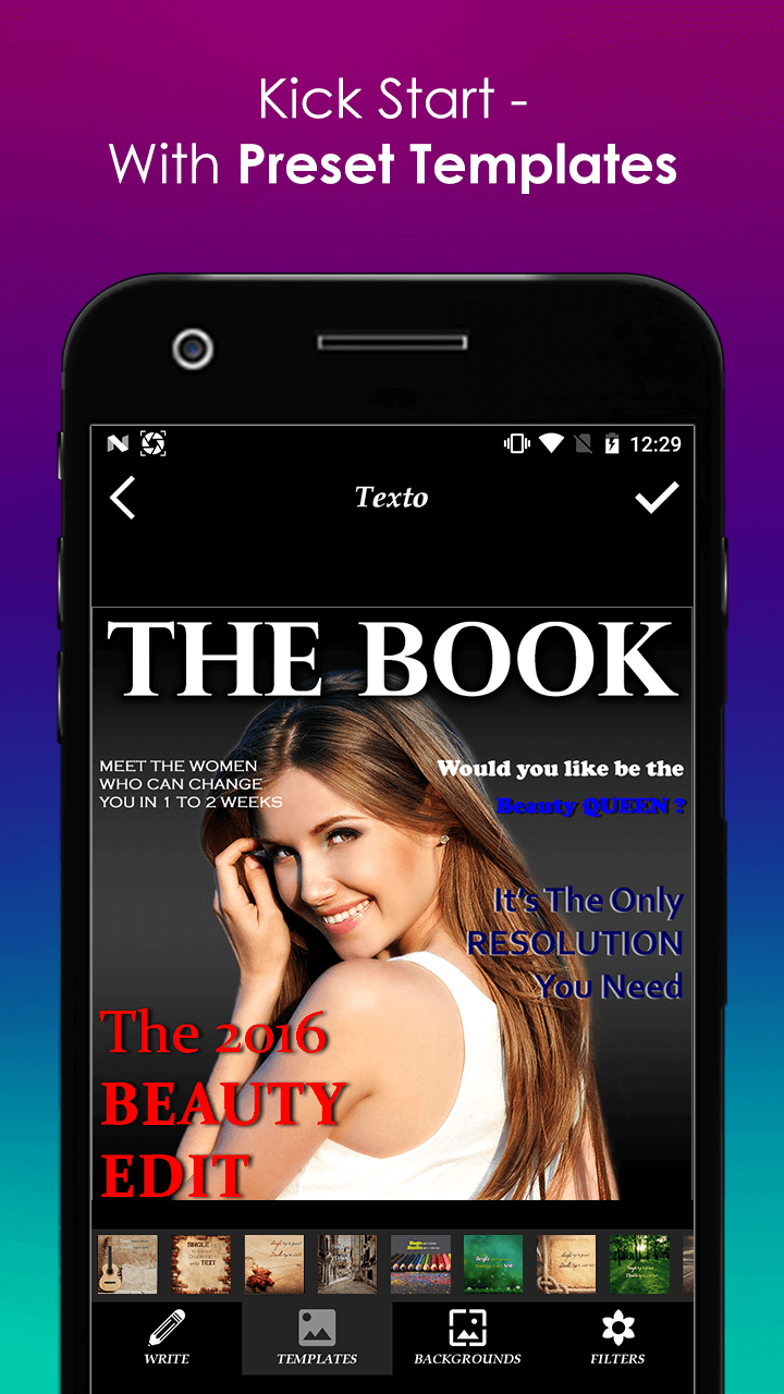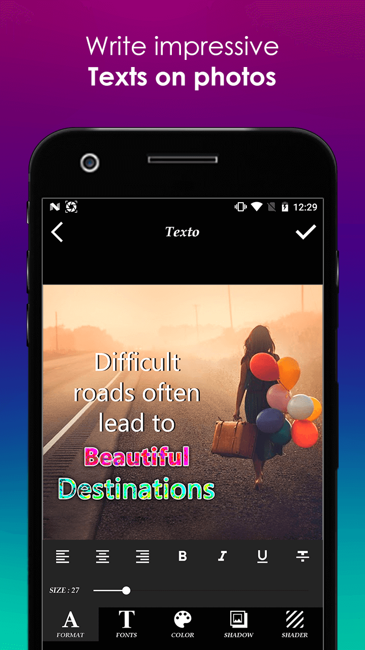 Texto Pro Premium or upload your favorite content.Users can use their templates in TextO Pro. The design process will be shortened when you can freely adjust the template version. The application space is just enough for users to present their designs and find the necessary tools. These products will be saved to the device and used in m