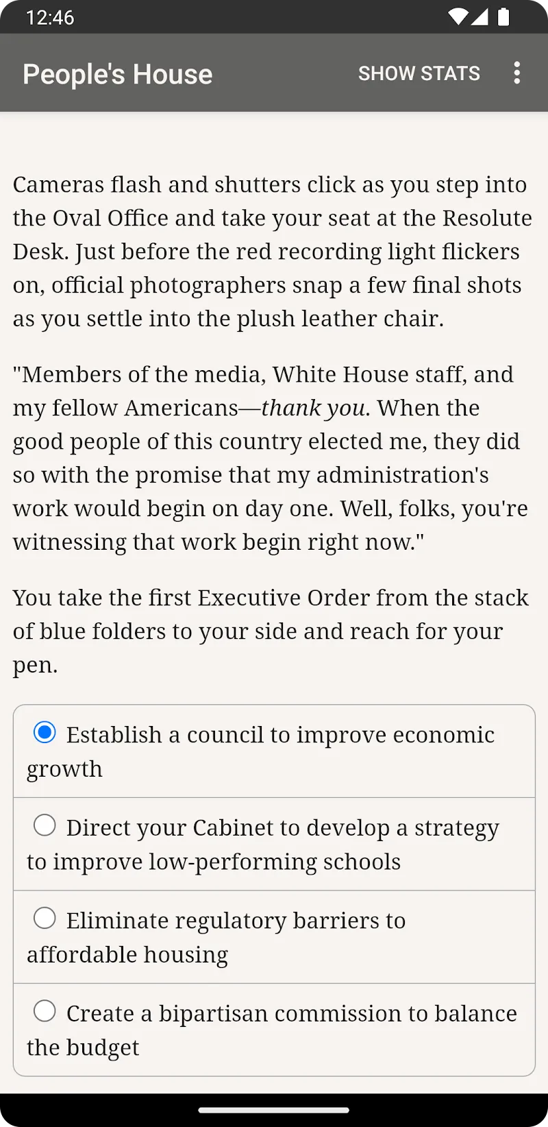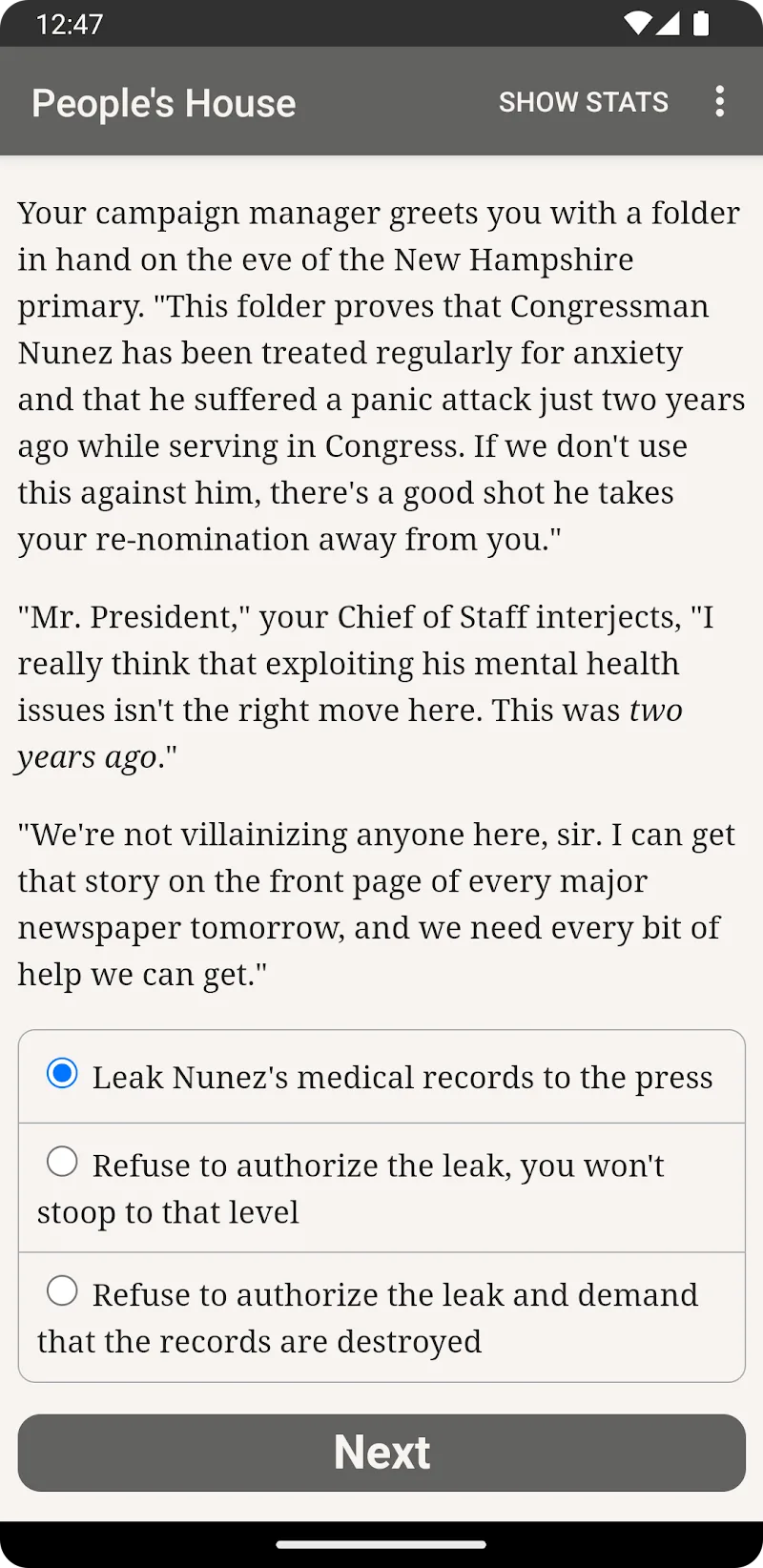 The Peoples House Premium The whole story will be more than 40 thousand words long. It will be a very long amount of content. With novels, you can read faster. But with this, you also have to be the one to make decisions.HIGH-STAKES DECISION MAKINGWith just one signature, you can make an entire country collapse. A law you make also affects millions of people. Such great psychological pressure, can you bear it? If you can’t bear it, of course, it will lead to mistakes. The consequences of a hasty decision can still be fixed if you realize it early. But is