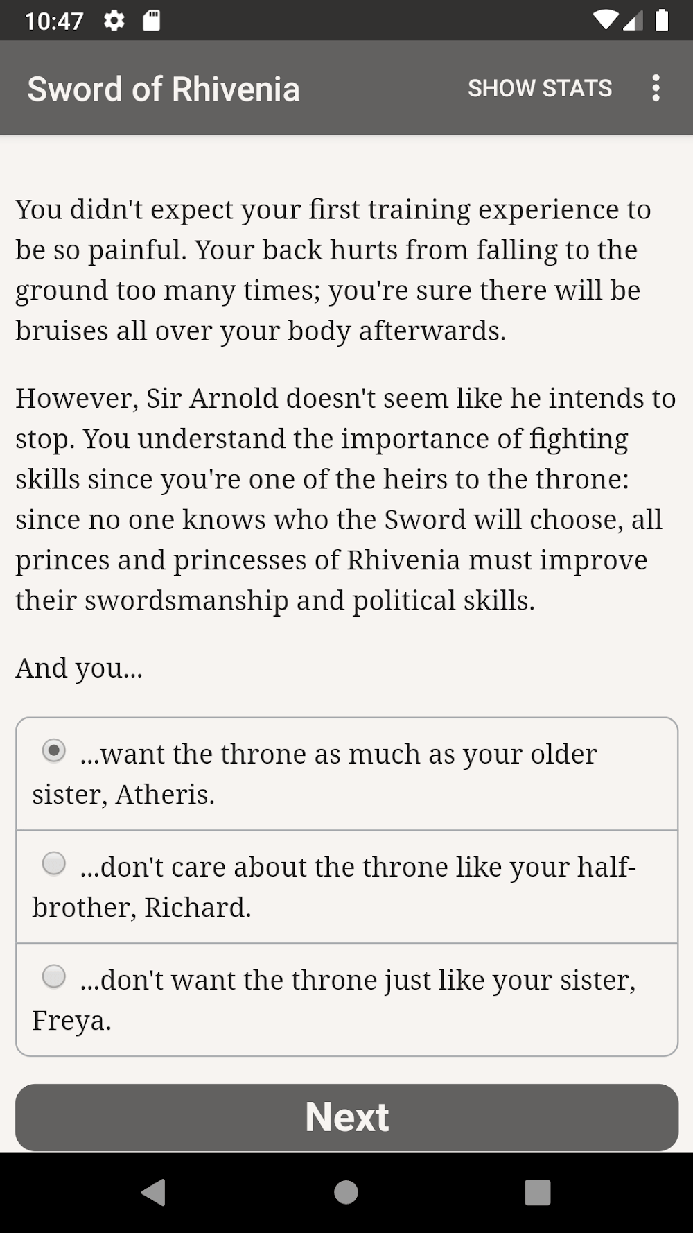 The Sword Of Rhivenia Mod Apk aks out, and the player can decide to join or stay away from this vortex. All choices lead to a different outcome and change the character’s stats. The gameplay interface is simple and helps to display the information most clearly. When you grasp the current situation, you are forced to consider it many times.THE BATTLE FOR THE THRONEThe Sword of Rhivenia tells the tragic story of three prince brothers. Each of them wants to be the successor to the throne, but the divine swo