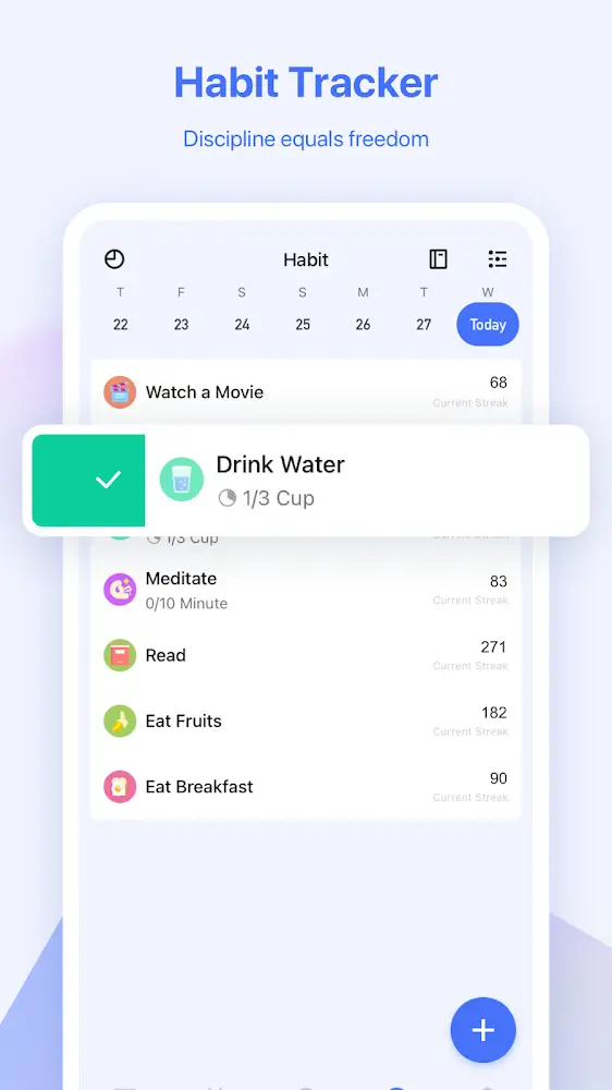 A modern planning support and tracking tool officially launched called TickTick. This is a tracking application where users can choose to take notes on the work they have done or plan to do. The application is always innovating to meet the needs of tracking capabilities, creating a schedule, and adding new customization features. You should monitor and update new features to promote the effectiveness of the application in work and daily life.HABIT TRACKERThe application helps you make plans according to specific timelines and is convenient for the tracking process. Friendly application, intuitive interface, and customization capabilities are highly appreciated to meet user needs. Besides, the application also offers different comparison charts so you can review your own plan and compare the progress you have achieved over that period of time.Build good habits: The application allows you to track daily habits and make notes in categories such as exercise, sleep, meditation, drinking water, etc.Track habits scientifically: The application allows you to note down goals and make reminders to perform