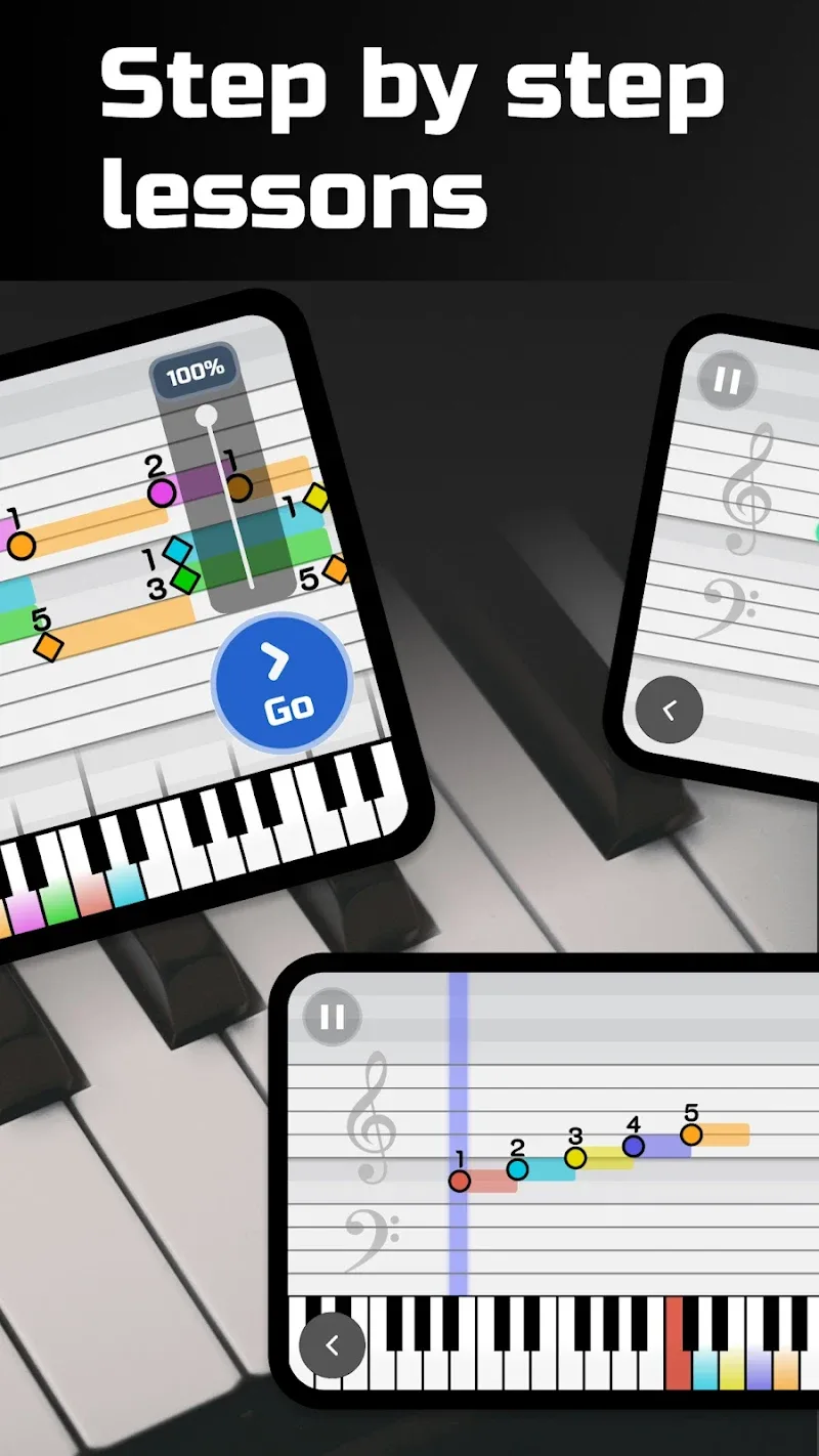 Timbro Piano Learn Piano Premium ll the knowledge and exercises needed for the piano learning process. The joy of learning the piano can motivate users.VIRTUAL PIANO KEYBOARD ACCESSThe application designs a virtual piano to help users practice easily. The process of learning to play the piano will include learning theory and practice. To practice better, players will have to get familiar with the keys on the virtual piano keyboard.Start without piano: Owning a piano is a luxury. The application will help users learn and practice playing the piano without a piano. The virtual piano keyboard will accompany users in all piano lessons. The process of practicing wi