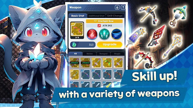 Tower Cat Battle Idle Cat Rpg Mod Apk iverse and suitable with many types of cute cat skins. Cat warriors possess both flexible and durable strength. Each type of fighting skill brings a new look and many interesting moves when confronting.Unique Abilities: Players need to upgrade unique abilities for each skin to ensure they are always new and modern. Your enemies will always be stronger each time entering the arena. The most important task that players have to do is to strengthen your cat.Personalized Experience: Personalize your journey to make it more meaningful and special. Cat warriors will stand out in battles with beautiful costumes.
