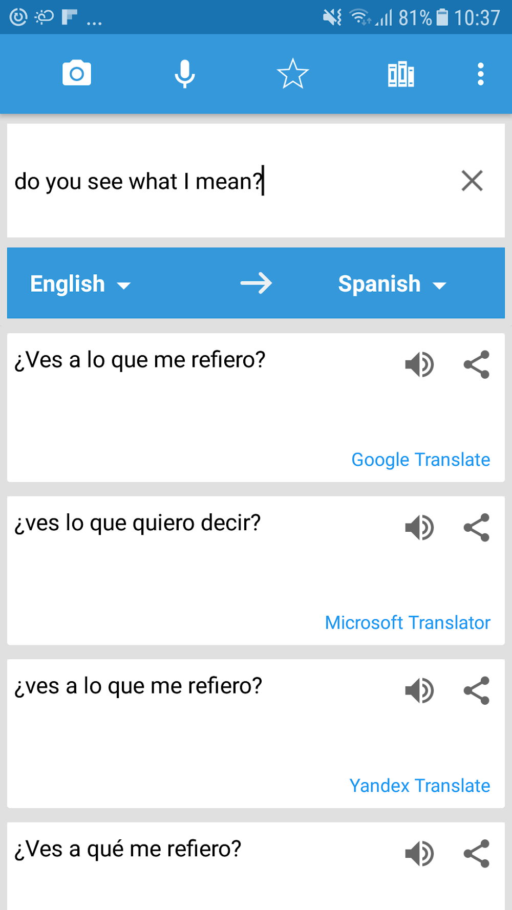 Translate Box Premium to date with any language. Therefore, users can occasionally avoid entering text into the program by scanning documents such as photos or PDFs. Thus, translating papers for use at work or school is a time-saving option with this app.In addition, the app’s ability to translate spoken words makes it a great travel companion. A user can input another speaker’s voice and have it played back in the target language. With that feature, you can easily interact with foreigners or have a conversation without misunderstanding. You can even pass through the language barrier and perform better in learning English for your purposes.NUMEROUS TRANSLATION SYSTEMS FOR DIFFERENT RELIABILITYThere is no way to dispute the veracity of this statement. Do you have doubts regarding the reliability of Translate Box’s translations? If so, you may relax knowing that