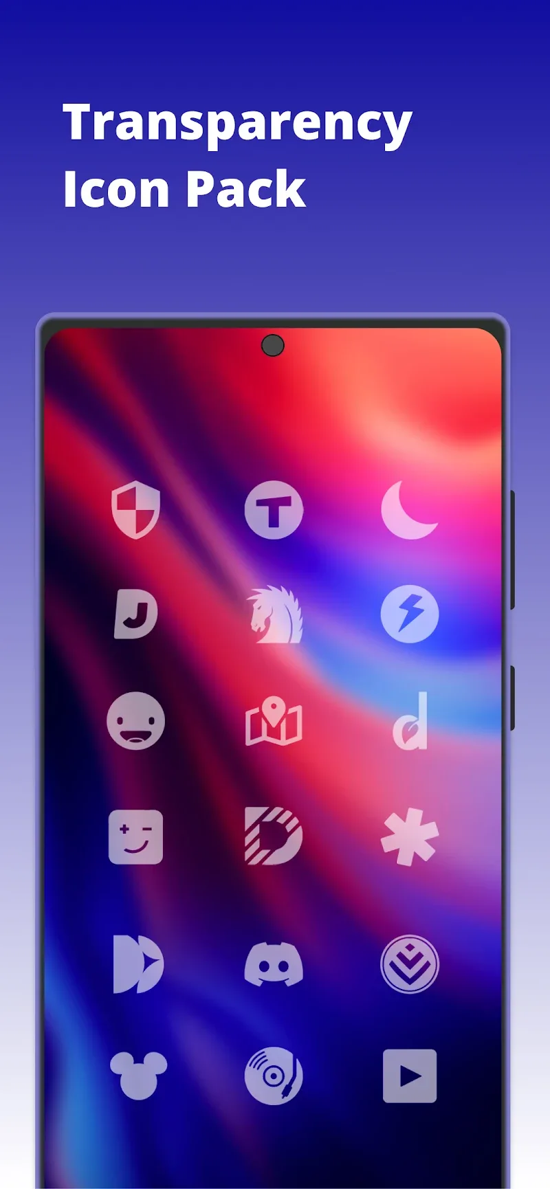 Transparency Icon Pack Premium y delicate and extremely aesthetic beauty that gives you an extremely interesting experience when using this application.MASSIVE ICON COLLECTIONComing to this application, you will own an extremely large collection of icons with unique and trendy themes. You will be free to choose and find the icons that suit you best to use.Extensive Library: The application brings you more than 2400 icons that adapt to more than 43000 applications, even the least used applications. S