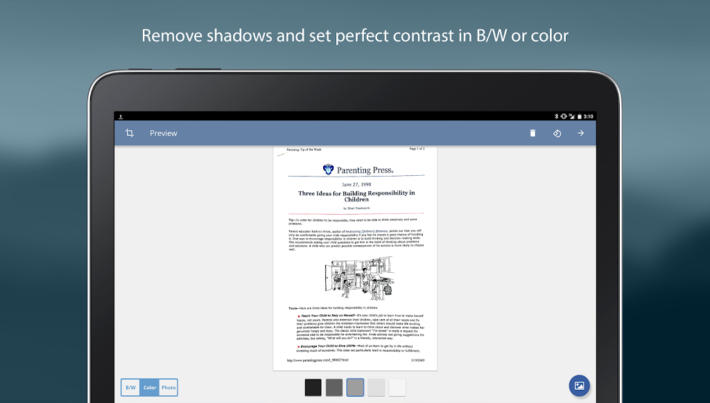 Turboscan Pro Pdf Scanner Premium le and use the application to capture all its pages. The system application is re-arranged into a logical sequence and forms a complete digital document. Your job now is to check the content and color adjustments generated by the algorithm. Therefore, processing a paper document becomes simple and convenient for users.ADVANCED SETTINGS FOR EACH CASEIn some cases, users take advantage of manual editing to ensure the quality of the document. Everyone can easily control the co