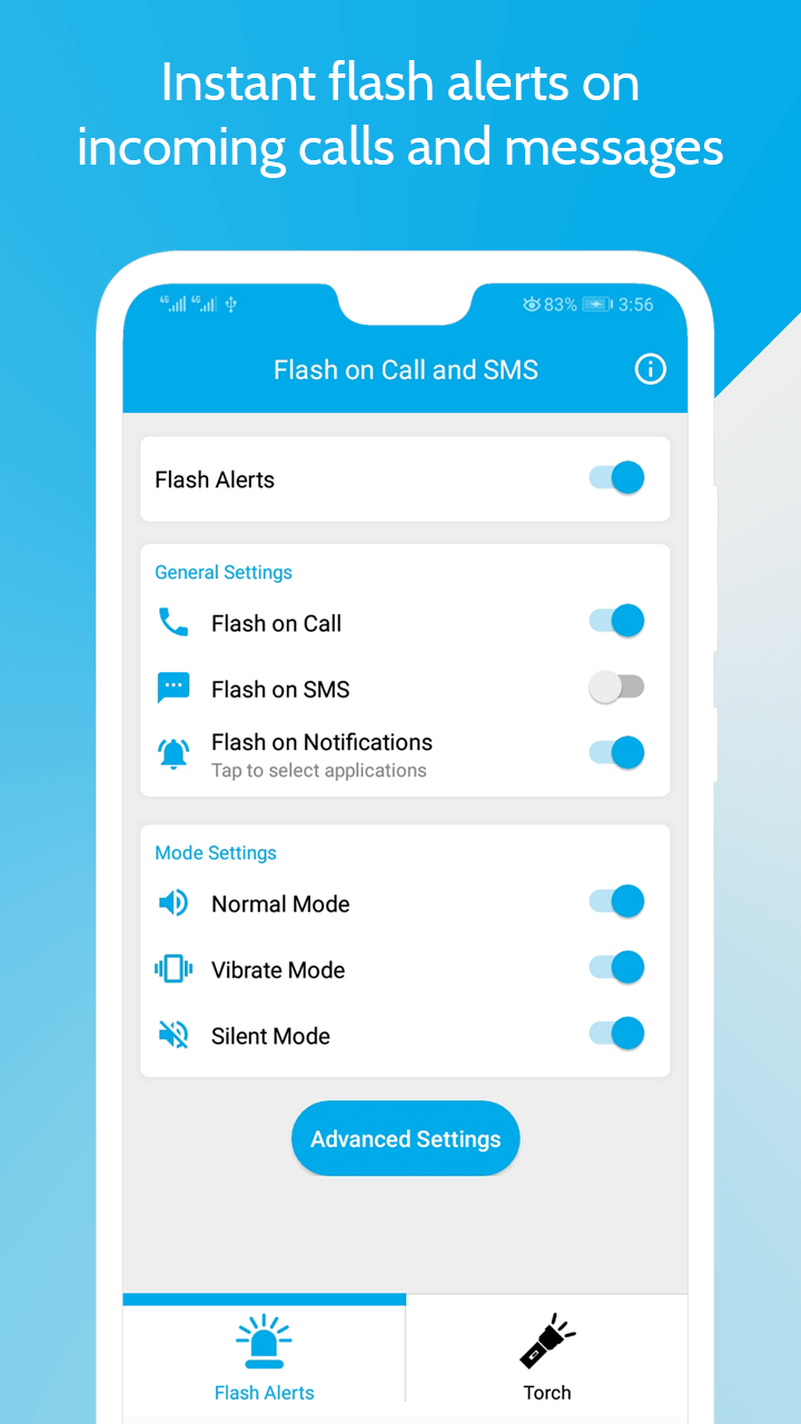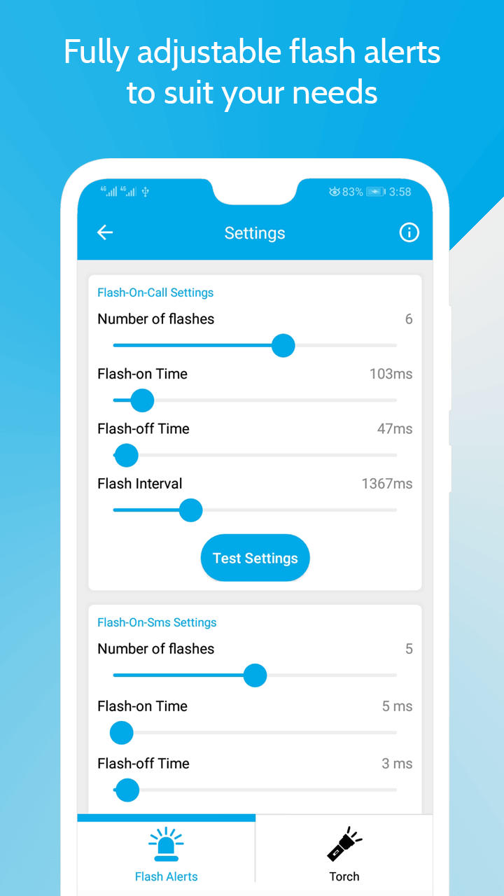 Ultra Flash Alerts Blink Flas Premium he app has extensive customization sections with different settings and options to give you the leisure of altering a personalized flash for your phone. Through this section, the flash will act differently, making your device more catching and allowing for certain actions to proceed with silence. Thus, the simple yet effective flashing actions will bring you many benefits if utilized effectively for different scenarios or situations. That includes setting up specific flashing styles