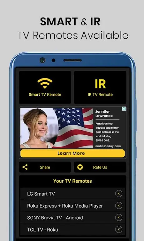 Universal Tv Remote Control liteapks ists or difficult user interfaces. It’s time for simple control.REVOLUTIONARY FOR INFRARED TVSInfrared TV owners may relax. The Universal TV Remote Control app’s infrared capability is built-in. You can transform your phone into a powerful universal remote control by sending signals to your TV like a standard remote. Your phone controls everything from station switching to volume adjustment.SUPERIOR ASSISTANCE FOR ALL USERSThis breakthrough app’s developers, CodeMatics, prioritize your satisfaction. They worked hard to build a clear, intuitive UI that satisfies all your needs and simplifies your experience. They continue. If your TV brand isn’t mentioned or you have compatibility issues, their dedicated customer service team is just an email away. They need to know your TV model and remote to make the app work.
