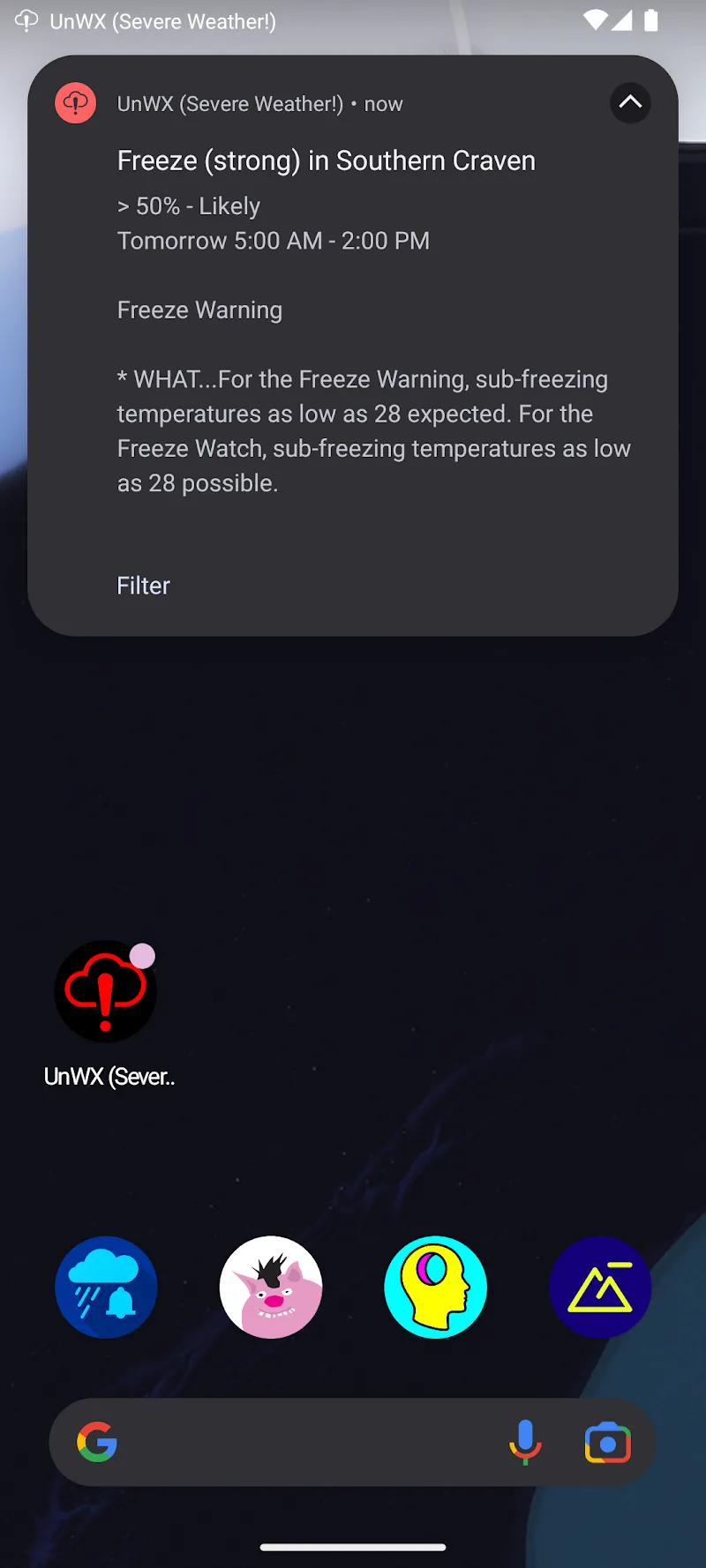 Unwx Severe Weather Alerts Premium ent and protect your property well. It brings you extremely useful and convenient experiences.Includes probability indicator: The application will bring you extremely detailed information. You will grasp all the weather indicators, helping you to be perfectly prepared to respond.COMPREHENSIVE WARNING TYPESThe application brings you countless comprehensive warnings of all natural disasters. Bring you the most accurate and perfect information without having to search through too many news sources.Covers