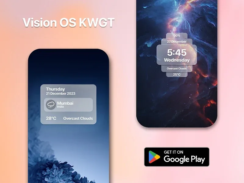 Vision Pro Kwgt Premium t.Supports Custom Launchers: The application brings you extremely attractive support programs. Your phone will become much stronger and more optimized, giving you the most versatile phone.USER-FRIENDLY SETUPThe application will bring you extremely user-friendly features and installation tools. Help you quickly edit and customize your phone to be perfect and easy.Simple Installation Steps: With this application, you will come to extremely simple installation steps. Help you quickly a