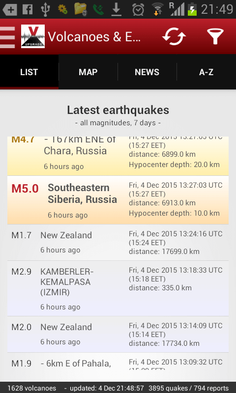 Volcanoes Earthquakes Premium ocation without performing numerous complicated operations. Besides, the map is displayed with the names of countries and symbols of natural disasters so that you can observe and capture information easily. Touching those icons, for example, will display more detailed information and the time and location of earthquakes or volcanic eruptions. You can also change the format of the chart to suit your needs.THE FORECAST AND OTHER SEARCH TOOLS PROVIDE MORE NATURAL DISASTER INFORMATIONNot only providing extremely interesting inte