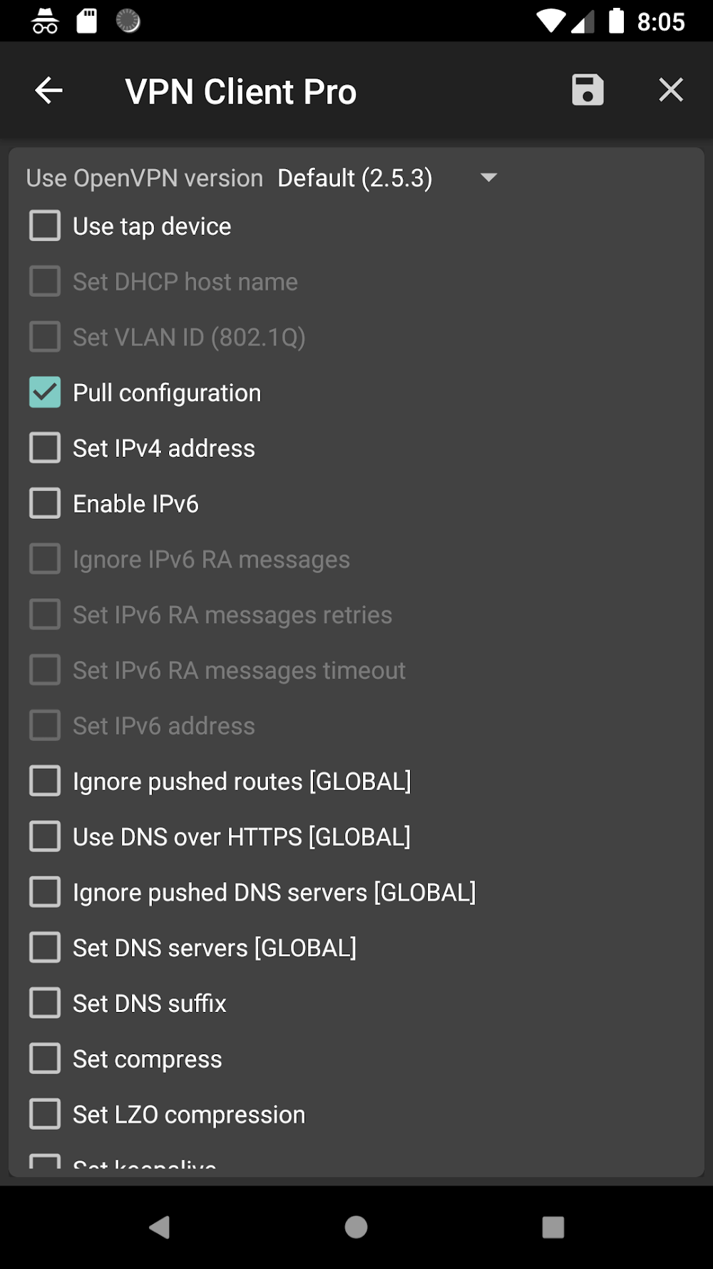 Vpn Client Pro liteapks ice configuration. These are simple notifications that always help users have an easy and appropriate connecting experience.Adjust details: You definitely don’t want your settings to become meaningless and time-consuming if you don’t save them.Quick restore: If the application receives backup files, users can restore information at any time.RELIABILITYThe number of profiles will increase because the application has many tunnels and different parameters that can be added to create a profile. Therefore, during use, users can completely delete defective things and leave quality things for later use. If you use profiles just to surf the web, then you can make auto-connection quite easy, but if your experience is more complex, like gaming, then choosing a profile yourself based on the patterns is a must. The description is also necessary to avoid your experience being interrupted midway.Compatible with connection types: No matter what network you are using, the application still operates in the most normal way.Ensuring stability and security: Server creates a strong layer of protection and an unlimited number of uses for users.No hackers: Important information is never stolen by people with bad ideas.
