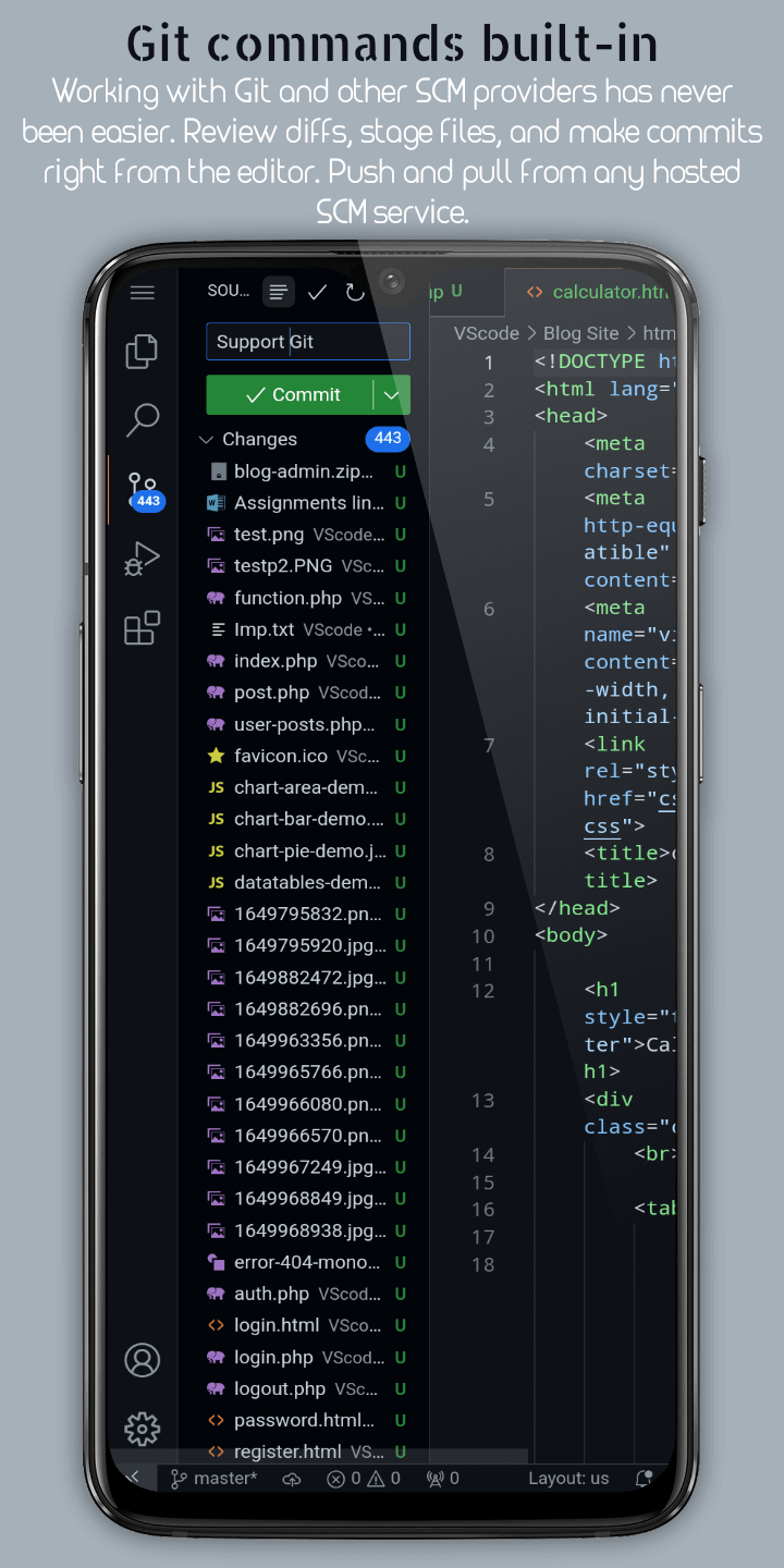Unlock your coding potential with VScode for Android MOD APK Code, debug, and collaborate on the go with this powerful code editor.VScode for Android is a cross-platform coding application that helps users work anywhere they want. They can take advantage of short periods of time to code and perfect the product they are interested in. At the same time, throughout the coding process, users will receive support in recognizing syntax or automatically completing code lines to make everything happen faster and more accurately. It’s all about minimizing the pain for users when they have to fix errors after the program fails to run. Additionally, ongoing products or projects can be opened in various tabs of the application for convenient development and editing.POWERFUL CODE EDITORVScode for Android is a tool that any coder will need and love when they can work on their own device. Users can completely unlock various support features to accelerate the process of completing a certain software. All the features and interfaces are completely easy to understand, so once you have installed the app, you can get started on completing your project. In particular, you will realize that what you code on the application will be more accurate and easier to edit because the application has a reco