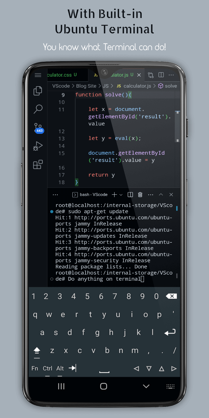 Vscode For Android Mod Apk gnition feature. This will make your work smoother and less frustrating because you don’t know where to start.Highlight syntax: Depending on the programming language, the recognition of features will also change over time.Quick completion: The application supports autocompletion to help you save time typing complete algorithms.Use stock snippets: Fully vetted and established snippets can be useful to many people in many situations.CUSTOMIZABLEWhen you use a certain programming language to code, you will definitely notice that the screen will be numbered with different lines to identify each line of command you type. Anyone will feel comfortable with this because it is clear and brings more comfort to the user when what they are working with is a series of different lines of code without interesting illustrations. At the same time, line division also helps identify errors more quickly, and from there, you just need to go to the error line to edit the relevant syntax. Syntax recognition will appear in different colors.Choose your favorite theme: With the job of a programmer, you will have to choose a comfortable color to look at for many hours.Useful new tools: A feature will be added to the shortcut for ease of access or replaced with something else.MOBILE OPTIMIZEDThe applica