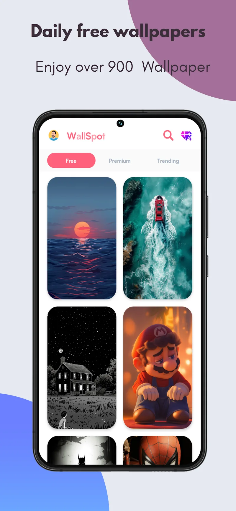 Wallspot 4k Wallpapers Premium able for modern trends, along with users’ favorite styles, will be added. Each update is a time when the application improves the quality of the collection.HIGH-QUALITY IMAGESThe photos shared by the application can be set as wallpapers for many devices. The application ensures that all wallpaper templates have HD quality. Users can choose any photo to set as wallpaper for mobile devices or desktop wallpapers. These extremely impressive designs will make the interface more prominent.Stunning HD resolution: All the wallpapers in the app’s collection are in HD resolution. With this quality threshold, the wallpape