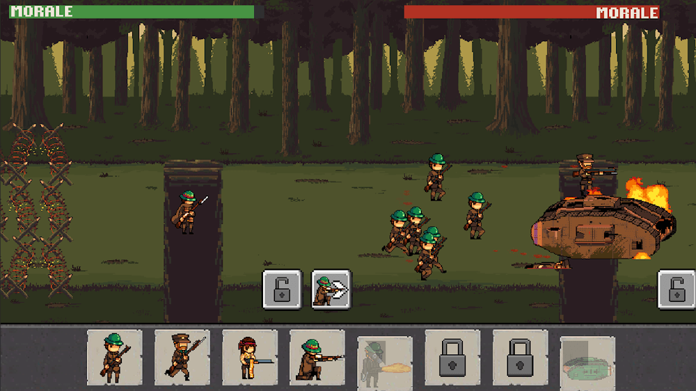 War Troops 1917 liteapks h their strongest powerful stats. This War Troops 1917: Trench Warfare game is a pixel characterized and designed with traditional battlefield arenas.There are different climatic locations and maps to explore in the pixel war game, which makes players very enthused about playing the game by choosing various areas and collecting amazing rewards. Multiple maps and stages of battles are provided to participate in exciting challenges. To complete and win the war, clear all the opponent soldiers and cross their country’s flag.