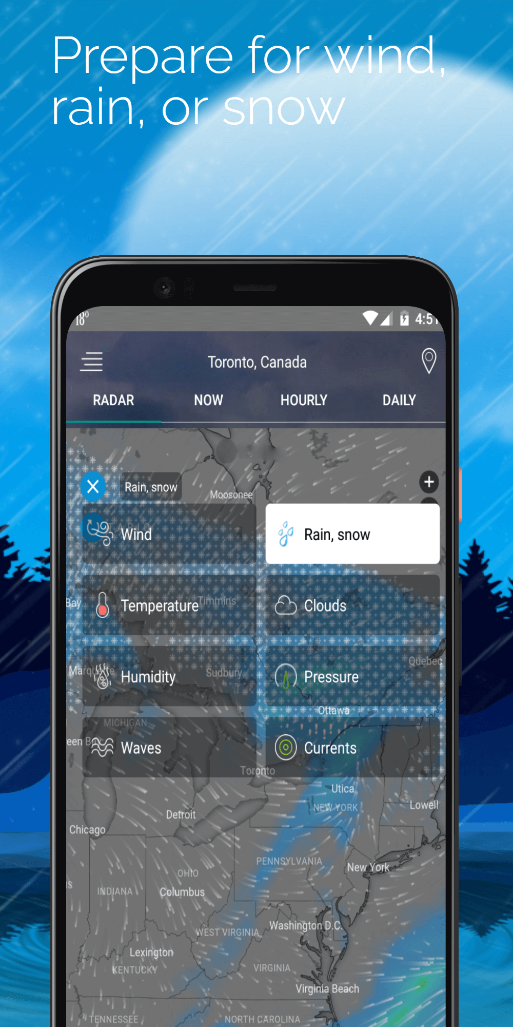 Weather Radar: Forecast & Maps brings a whole new perspective to users when observing weather phenomena. In particular, you can learn about their characteristics with just a few simple steps. The diversity of features can help you adapt well to the weather.REAL-TIME GLOBAL WEATHER TRACKINGWeather updates can be upgraded to a new level over time. From there, you will have unique perspectives that no one can ignore because