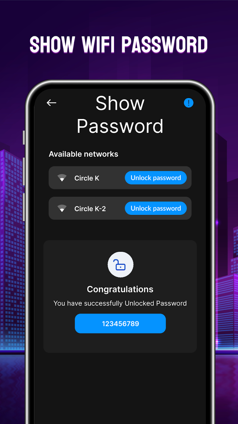 Wifi Password Wifi Hotspot Wifi Manager Premium convenient application.One Click Access: You will quickly be able to access wifi hotspots extremely easily, with just one click, and you will have successfully accessed. Helps you to quickly connect without having to use too many cumbersome operations that waste time.WIFI UNLOCK FEATUREThe application also brings you the wifi unlock feature. With this feature, you can access any wifi you want without having to use a password.Access Internet Anywhere: With this application, you can quick