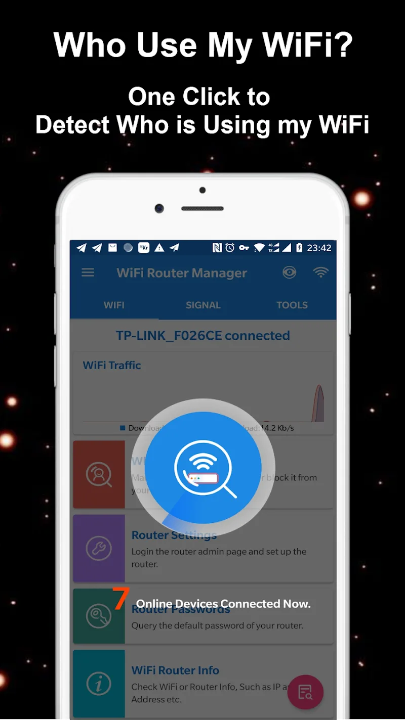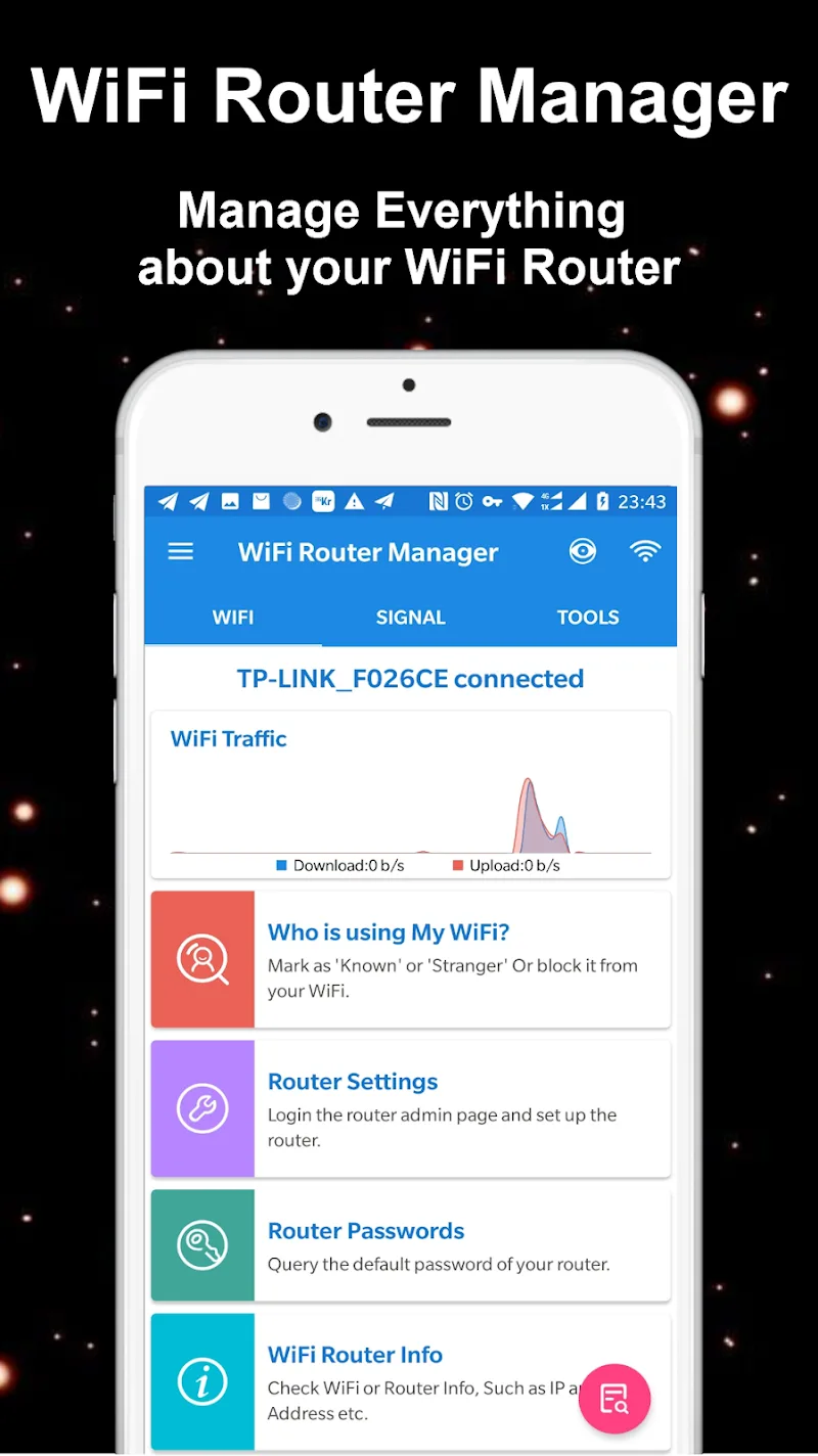 WiFi Router Manager APK – Control, protect, and analyze your WiFi network with ease and efficiency.The internet has become extremely important in everyone’s life and no one can live without WiFi. But this device is often used secretly by many different subjects. The application appears to help you deal with suspicious subjects and improve connection quality.WIFI SECURITY MANAGEMENTUsing WiFi often has certain problems that you need to pa