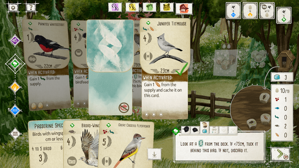 Wingspan The Board Game liteapks ame also gives anyone participating in this game extremely interesting and new knowledge about birds. Here you can expand your knowledge of the world around these animals and their habits and habitats. Each card will tell you the essentials and more detailed information. Thanks to that, you can both enjoy the great entertainment of the game and expand your knowledge of the rich nature of this game. In addition, you can also access the collection of birds you have collected to look up any species you want.