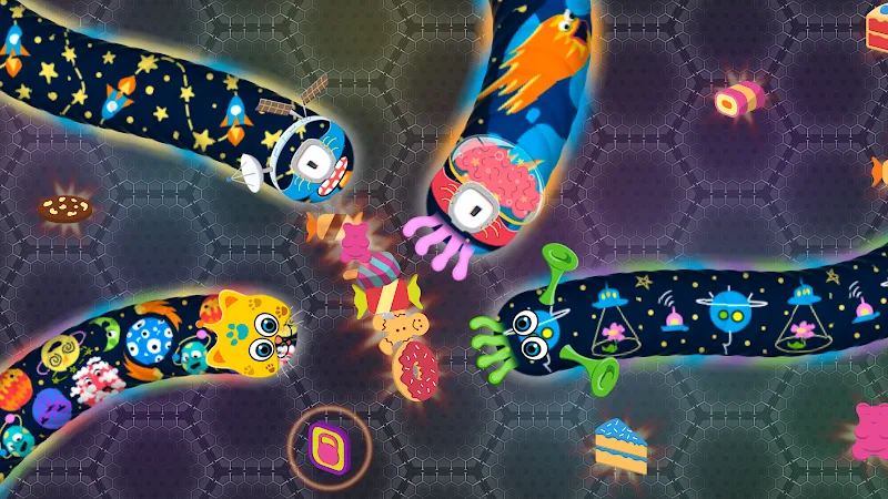 Wormate Io Premium an bring to its players is the ability to play with many different players worldwide.Make new friends: The game encourages players to converse with new friends from many different countries and cultures.Team up for success: The game will require its players to form alliances and cooperate with other players to fight for positions in the rankings.GROW YOUR WORM BY EATING SWEETSThis worm’s food is sweet dishes. They are icons floating in the air, and you will come and eat them. Once the play