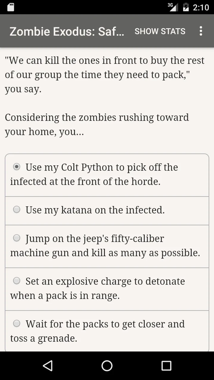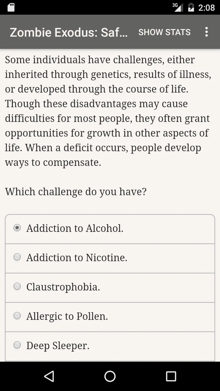 The apocalypse has come and wiped out human civilization from the Earth. But of course, there will still be a number of humans left after that terrible disaster. Until now, when dawn comes again, when you think you can survive in this time, another disaster strikes. Zombies are a horrible and inhumane species. They attack humanity to completely destroy humanity. Zombie Exodus: Safe Haven is a story, a novel. Meaning that the game has no animation or sound at all. The special thing is that the final outcome of this novel is decided by you.MAKING YOUR OWN CHARACTERThe main character will start their adventure to explore the wild world aft